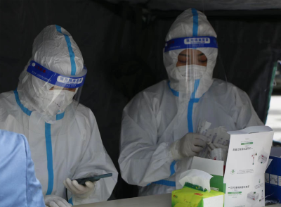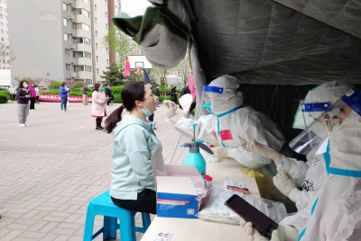 ▲医务人员、贴标人员清点核对物资 ——现场核酸检测的动容一幕 早晨7点开始,陆续有居民排队进行核酸检测,本次御德苑社区开设六个检测口,设立一个隔离区,分别在广场两侧进行流水式检测,每个检测口均有维持秩序的服务人员,进出口也安排有专人管理扫描场所码并进行测温工作,同时也有游走在各住宅楼之间的喊话人员,帐篷中还有贴标、身份信息录入和登记人员,这些也都是志愿者的身影。在居民排队入口处,社区工作者还专门为老弱病残孕等人员设置了绿色通道,便于特殊人群能够及时地核酸检测,工作开始,我一直作为秩序维护人员,身穿防护服,头戴隔离眼罩,全身包裹严实,太原这个城市昼夜温差较大,清晨还是比较寒冷,所以大多数志愿者和我一样,都没有脱下外套就开始穿防护服,快到中午的时候温度骤然升高,衣衫里都被汗水浸湿,甚至有的志愿者汗水流到眼角,都坚持着将工作完成,直到最后的居民做完核酸检测后,又持续了半小时社区工作者和志愿者们才去进行自己的检测工作,收尾工作也比较繁琐,医用废弃物和垃圾投入到专门的回收点,所有的人员保持间距有序退场后,最后由社区工作人员和网格员收拾卫生、清点物资和其他工作。