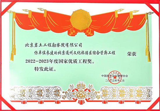 中国地质参建的北京通州文化旅游区综合管廊工程项目获国家优质工程奖 |